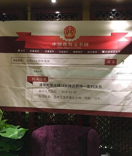 清华法博14女神诉男神,判决结果:男神无条件服从女神,刑期一万年。