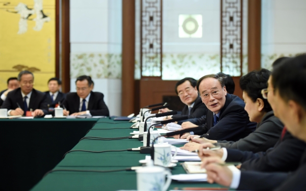 3月7日,中共中央政治局常委、中央纪委书记王岐山参加十二届全国人大四次会议河北代表团的审议。新华社记者张铎摄