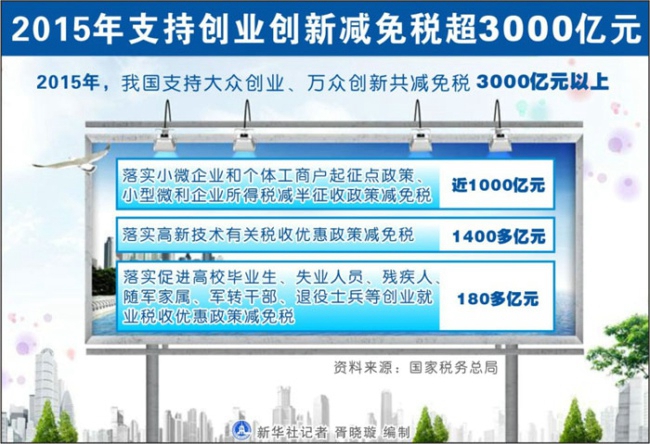 2015年支持创业创新减免税超3000亿元
