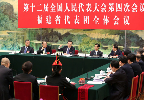 【李克强以“闽”字巧释新动能】“福建简称‘闽’。从字形上看,就是一只虫被框在里面。要向上突破、破茧成蝶,上面那一个突破‘点’,就是经济发展新动能。”李克强7日参加十二届全国人大四次会议福建代表团全体会议时,巧妙解释引发代表们会心笑声。总理表示,希望福建奋力争先,加快新旧动能转换。