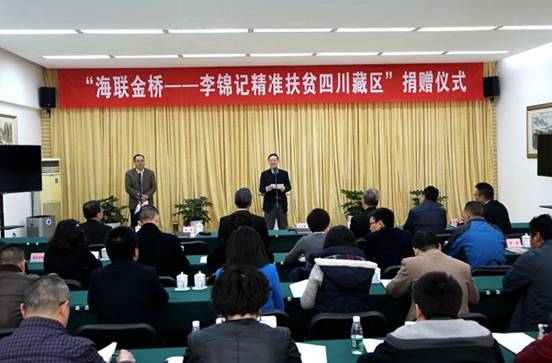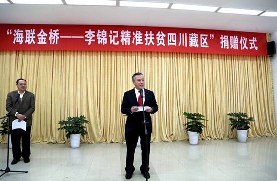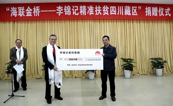 3月4日,四川省委统战部举行“海联金桥——李锦记精准扶贫四川藏区”捐赠仪式。仪式上,省政协委员李惠中代表香港李锦记酱料集团捐款20万元,精准扶贫甘孜州康定市的贫困藏区群众。
