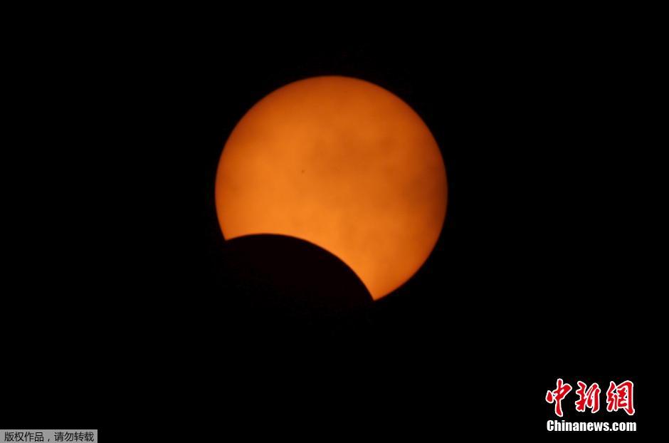 在印尼特尔纳特岛上观测到的日全食开始时的景象。