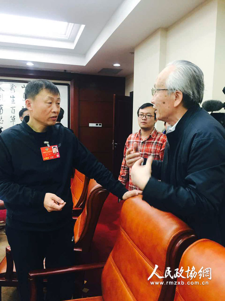 10日上午讨论慈善法草案,王名委员成了“大明星”。发言时,有委员帮他添茶,有委员全程用镜头记录?;嵋樾菹⒓湎?,70岁的孙正聿委员拉着王名请教一个关于基金会的问题,而后王名又被记者们团团围住。人民政协网记者 司晋丽/摄