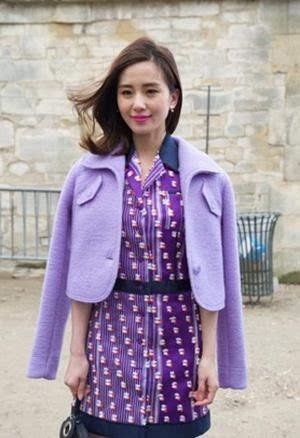 也许是诗诗觉得自己还不够紫,于是又在嘴唇涂上了能腻死人的玫红色口红,整体效果堪比车祸现场。