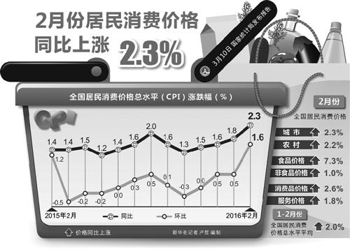 3月10日,国家统计局发布了2月份全国居民消费价格指数(CPI)和工业生产者出厂价格指数(PPI)。数据显示,2月份,CPI同比上涨2.3%,环比上涨1.6%;PPI同比下降4.9%,环比下降0.5%。