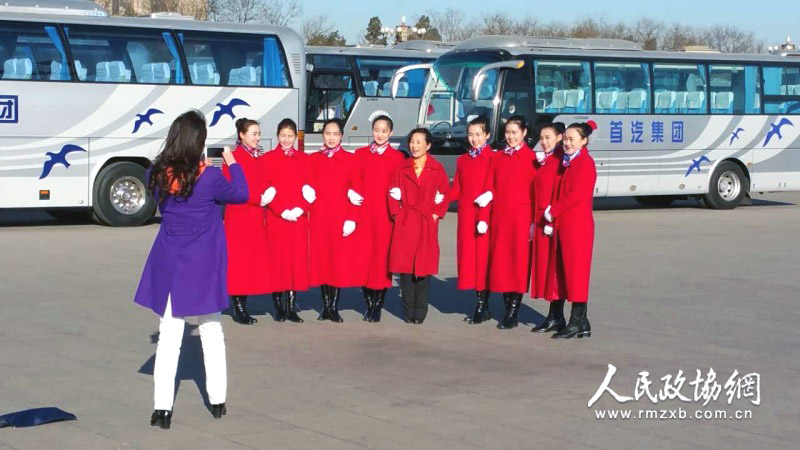 “我也为你们服务一次,给美女们拍张合影?!?1日上午的天安门广场,参加政协十二届四次会议第三次全体会议的窦晓玉委员为参与大会服务的鸿府大厦驻地服务人员合影,表达委员对他们辛勤工作热情服务的谢意。人民政协网记者 廉维亮/摄