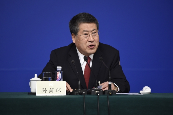 这是孙荫环委员在回答记者提问。新华社记者 陈益宸 摄