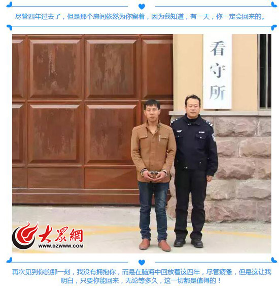 3月7日,石义灿迫于思想压力“在爸妈的陪伴下,终于回到我身边”。尽管4年过去了,但拘留所里“那个房间依然为他留着”。4年了,济南交警部门“终于等到你,还好我没放弃”。交警蜀黍说,“再次见到你的那一刻,我在脑海中回放着这四年”,“尽管疲惫,但只要你能回来,无论等多久,这一切都是值得的”。