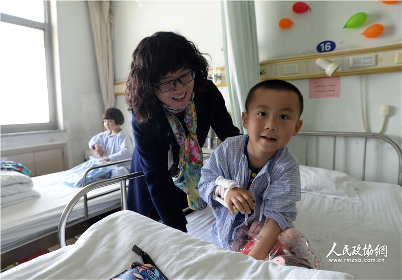 病房里,委员们或俯身与孩子们聊天交流,或询问医生孩子的治疗情况,画面十分“有爱”。只见孩子们一张张灿烂的笑脸,难以想象这群古灵精怪的“小天使”个个都将是打败“病魔”的“小勇士”?!熬戎瘟撕⒆泳偷扔谑峭炀攘宋业募彝??!?岁的马瑞姿是“小天使”中年纪最小的一位。“去年3月,我的孩子被查出患有先天性心脏病?!甭砣鹱说母盖茁肀U娓屑さ馗嫠呒钦撸衲晁巧昵氩渭酉忍煨孕脑嗖【戎苹?,不仅为马瑞姿免去了几万元的治疗费,甘肃省甘南州卫计委的领导还带队为患者家属全程免费安排食宿并提供帮助。“我们当地的医疗条件非常有限,另外需要高额的医疗费用。我们通过甘肃商会和甘肃甘南洮商商会发动企业家和爱心人士所捐的善款对这些贫困患儿进行资助”,甘肃省甘南州卫生计生委的杨芳胜介绍说。