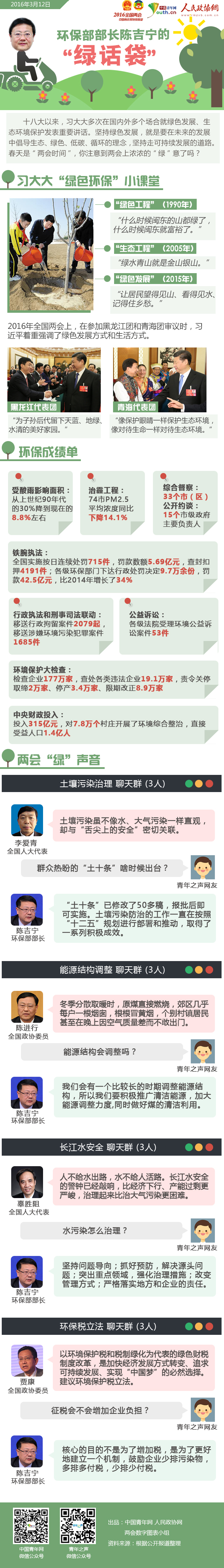 关键词:2016全国两会 环保部部长 陈吉宁 十八大 绿色工程