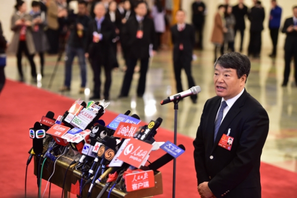 3月13日,十二届全国人大四次会议在北京人民大会堂举行第三次全体会议。这是会前,国家发展和改革委员会主任徐绍史接受媒体记者采访。新华社记者 刘军喜 摄