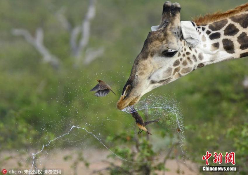 关键词:长颈鹿打喷嚏 口水喷湿牛椋鸟