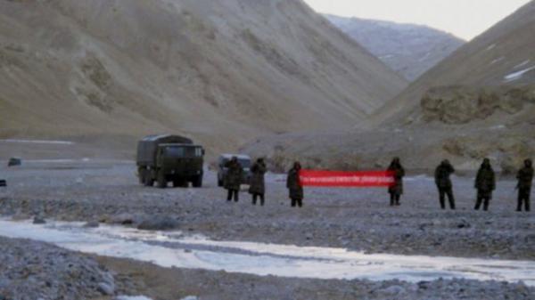 中国军人乘坐2辆轻型、1辆中型和1辆重型汽车,越过印度塔公地区的边界哨所,进入印控克什米尔地区5.5公里深处。