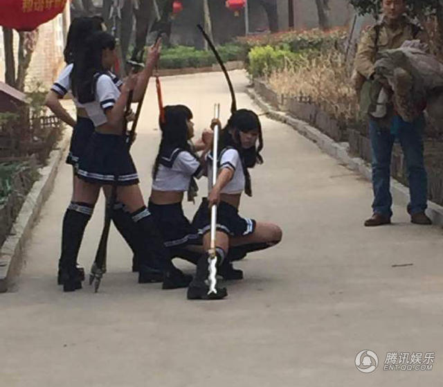 腾讯娱乐讯 3月13日,微博名为“i唐一”的网友晒出一组Sunshine组合拍摄MV的新照,照片中五人现身安徽亳州华佗故居拍摄MV,而且她们还都穿的是日式校服,五人大胆秀出大腿和蛮腰,尺度比之前大了不少。