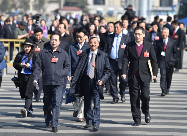 3月14日,全国政协十二届四次会议在北京人民大会堂举行闭幕会。这是全国政协委员走向人民大会堂。新华社记者李贺摄