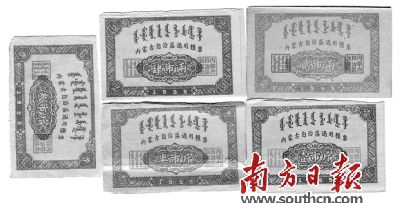 从1955年到1982年,我国共印制了9种年版33枚全国通用粮票。其中,全国通用粮票的“开门票”——1955年版全套共5枚,面额分别为4两、半斤、1斤、3斤、5斤,市价参考价为每套90至120元。