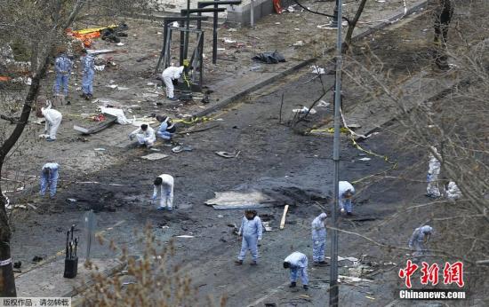 据法新社报道,当地时间13日,土耳其首都安卡拉发生自杀式汽车炸弹袭击事件。根据目前最新的统计数据显示,这起事件中的遇难者人数已经上升到37人。此外,卫生部官员还在一项电视声明中指出,至少有1名袭击者在爆炸中身亡。图为工作人员在爆炸现场?! ?/p>