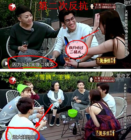 志玲婉转说“二姨听起来像二姨太”,李治廷怕她跟“德高望重”的丹丹姐起冲突,便要志玲“你别管了”,王琳也缓和气氛说“我还大姨妈”呢!