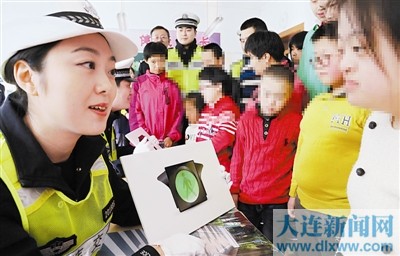 他们一行人来到中山区培智学校,给这些智障孩子讲解过马路应当注意的事项,教他们识别交通指示标志,讲雷锋的故事等,还给每位孩子赠送一套学习用具。