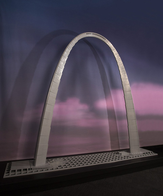 塔克用乐高积木搭建的圣路易斯大拱门,是美国的地标性建筑。