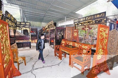 杨辉在歌乐山上一个仓库中,收藏着数十张古董床,请专人看管。 本报记者 雷键 摄