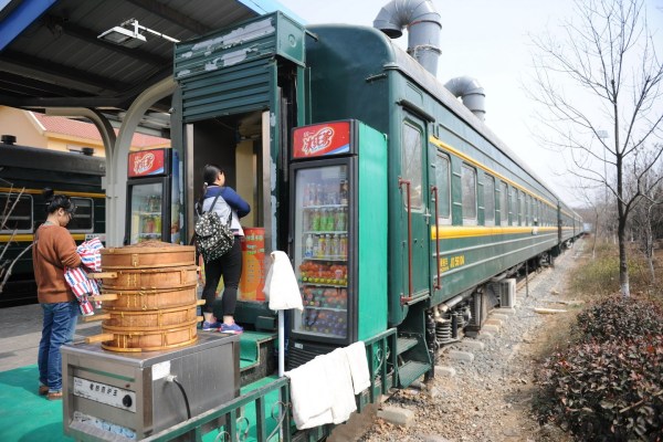 原标题:济南绿皮火车变食堂 大学生吃饭“赶火车”