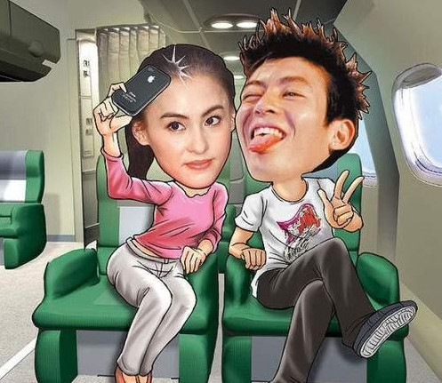 (艳照门后的2011年陈冠希在飞机上偶遇张柏芝,两人相逢一笑泯恩仇,还开心合照。据说,正是这事导致张柏芝和谢霆锋离婚。)