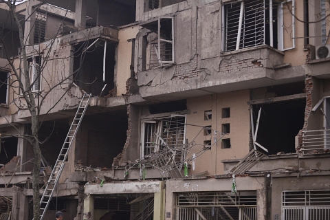 3月19日,在越南首都河内的河东郡,爆炸现场附近的建筑受到损坏。新华社/越通社