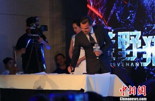 莱昂纳多秀墨宝 用中文大呼“我爱中国”(图)