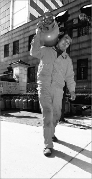 有人给他算了一笔账:平均每瓶气要扛上4层楼,高度在11米左右,老颜一年扛1.2万罐煤气,相当于上下15次珠穆朗玛峰。每天送完煤气罐回家,颜展红顾不上洗脸,要做的第一件事儿,就是急着把一枚枚硬币投进储蓄罐,再用劲摇一摇,听听清脆的“哗哗”声。