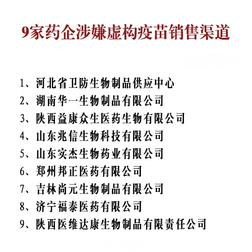 昨晚,食药监总局对山东济南非法经营疫苗案查扣药品的数据分析发现,有9家药品批发企业涉嫌虚构疫苗销售渠道,可能是造成涉案疫苗流入非法渠道的主要责任者。
