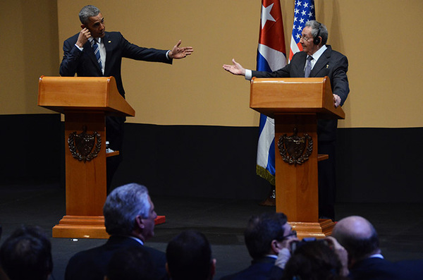 劳尔-卡斯特罗称,美国应解除长达54年的禁运,奥巴马称对此感到乐观,禁运将会结束,不过时间不能保证。共和党控制的国会拒绝解除禁令,之后奥巴马通过行政令放宽了一系列旅游和贸易限制。劳尔还要求美国归还已租借逾百年的关塔那摩湾,但奥巴马没有回应。
