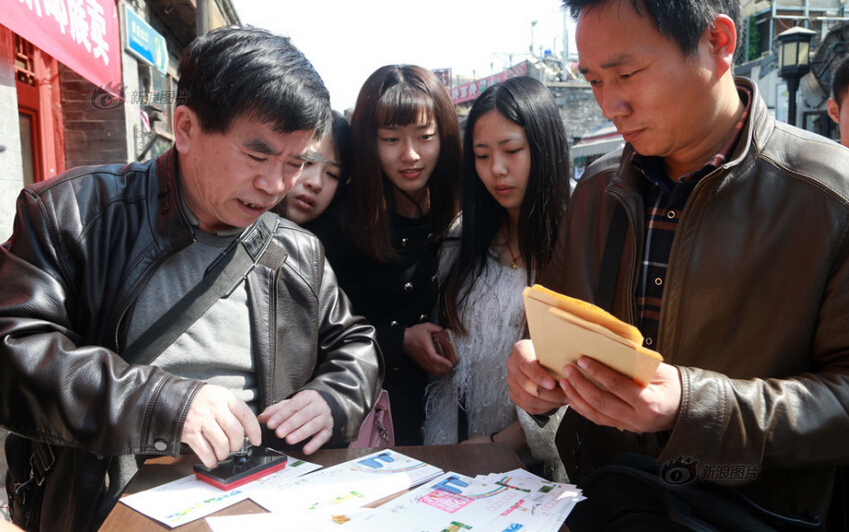 2016年03月20日,北京,因装修停业一个多月的大清邮政信柜在什刹海烟袋斜街重张开业。重张后的信柜除保留原有邮政业务外,还新增邮驿博物馆,为游客呈现从商周时期到清代的邮驿发展历程。集邮爱好者在大清邮政信柜门前加盖纪念邮戳。