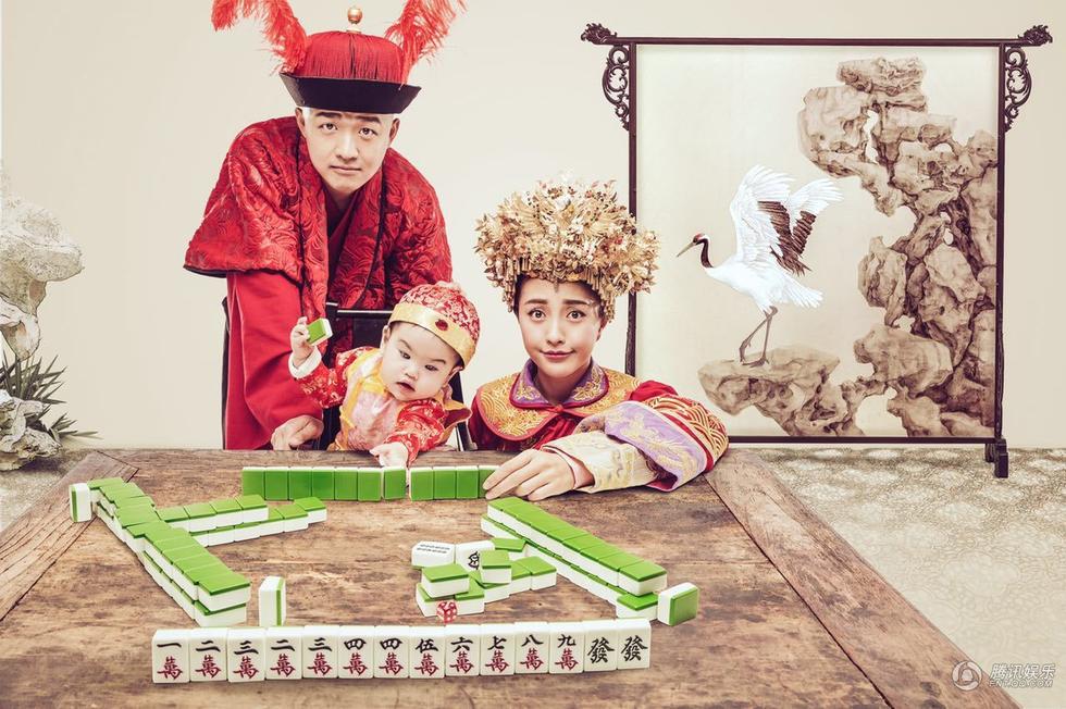 包贝尔一家三口的复古搞怪婚纱照曝光。
