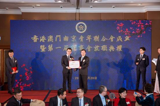 3月20日晚,香港澳门南京青年联合会在金钟万豪酒店举办成立曁第一届理事会就职典礼。中央驻港联络办公室副主任杨建平,外交部驻香港特派员公署副特派员宋如安,香港江苏社团总会会长唐英年,南京市政协主席沈健,南京市委常委、统战部部长、南京市海外联谊会会长徐锦辉,中央人民政府驻香港联络办公室协调部部长沈冲,共青团南京市委书记林武平,南京市侨联党组书记周雯,香港南京总会会长王建陵,澳门南京总会会长唐嘉乐等出席。