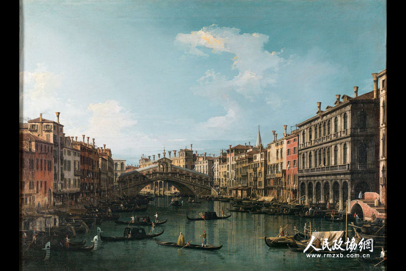 面向里亚托桥的大运河风景 卡纳莱托 布面油画