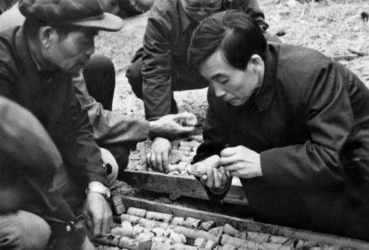 1985年3月,在湖南柿竹园矿区考察时观察岩芯