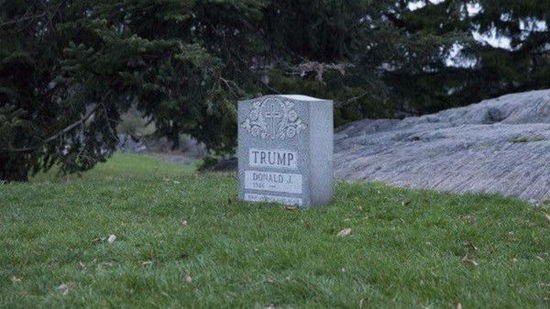 美国纽约中央公园出现了一座为特朗普而竖立的墓碑网页截图