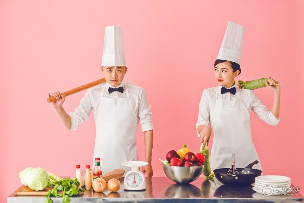 其中一组以厨房生活为主题的婚纱照,让众多粉丝大呼“好有爱”, 在这组照片中包贝尔、包文婧秒变厨师,在厨房里演绎锅碗瓢盆大作战,饺子更咬着苹果亮相,一家三口穿起厨师装“超有范儿”。