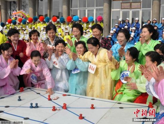 资料图:当地时间2015年2月19日,朝鲜平壤,朝鲜民众参拜朝鲜前领导人金日成和金正日的雕塑,举行各式活动庆祝农历新年到来。