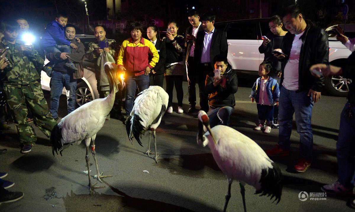 沈阳天上掉下多只“仙鹤” 市民争相围观(组图)