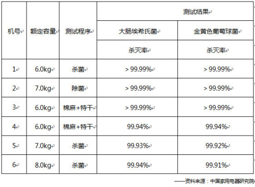 中国家用电器研究院健康家电分析测试中心首次公开了对干衣机的测试结果,6台样机中大肠埃希氏菌、金黄色葡萄球菌的除菌率均达到99.9%,符合《家用和类似用途干衣机的抗菌、除菌功能技术要求及试验方法》,这表明家用干衣机的除菌能力足以满足家庭的日常使用,能够有效避免由于不正确晾晒衣物造成的潜在危险。