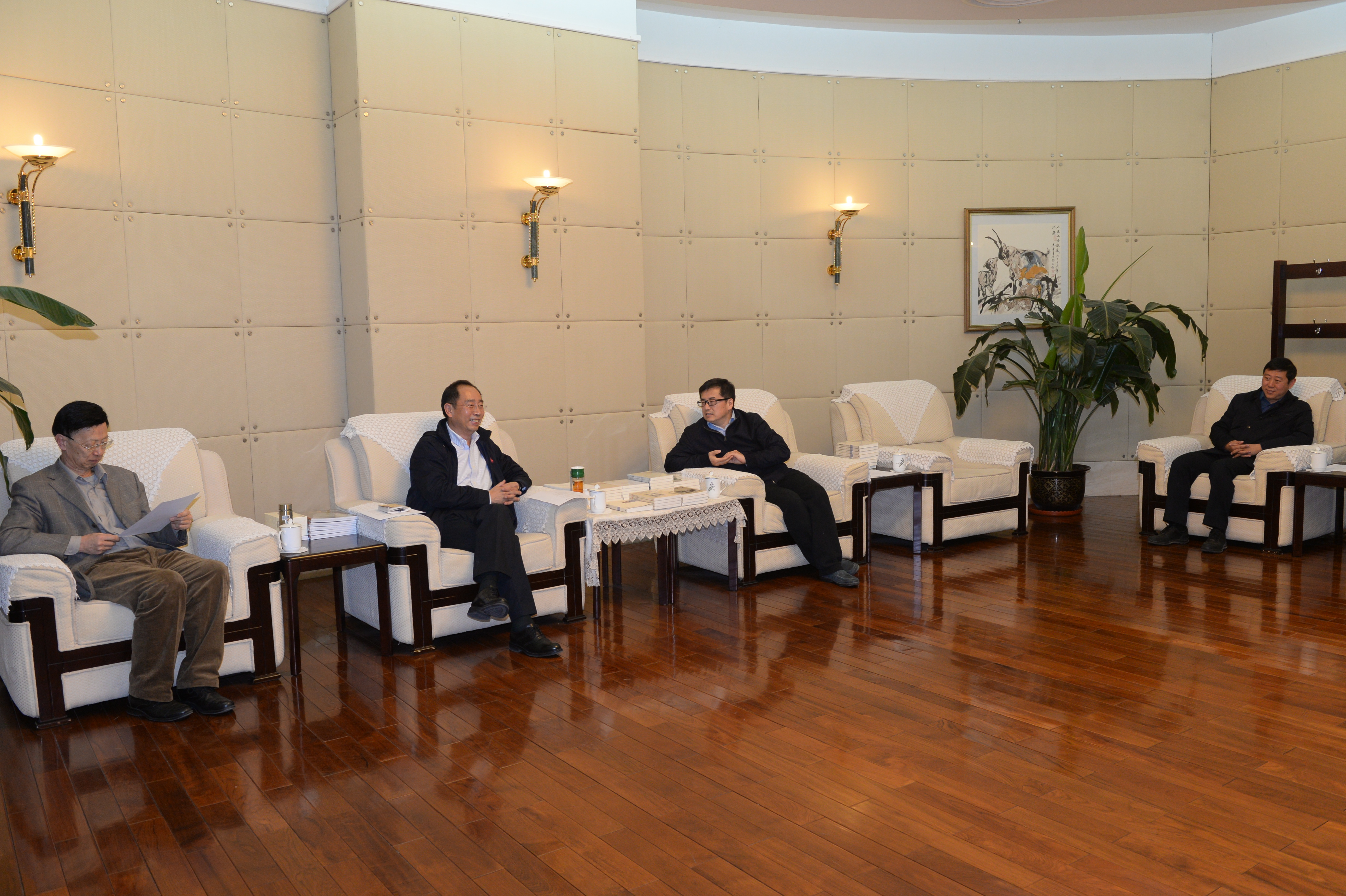 人民政协网北京3月31日电 青岛市政协党组副书记、副主席郄晋生(左二)一行31日下午到访人民政协报社,就如何做好人民政协新闻宣传工作等与人民政协报社党组书记、总编辑周北川(右二)等座谈交流。 人民政协网记者 贾宁 摄