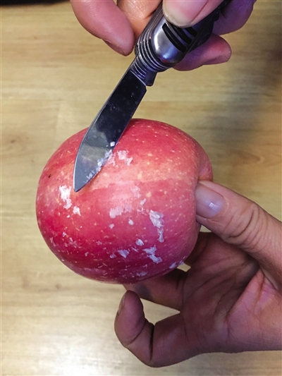 吃苹果、橙子时,?;嵊龅奖砥び小袄钡那榭?。近日,市民王女士削苹果皮时,发现用刀轻轻一刮,苹果表皮出现了不少白蜡,这种苹果能吃吗?此外也有传言称,打蜡的苹果是有毒的,食用容易致癌。