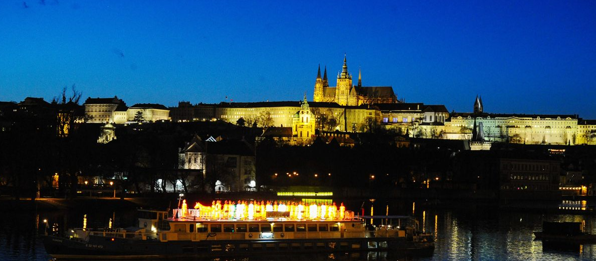入夜时分,伏尔塔瓦河静静地流淌,两艘载有60座兵马俑形态彩灯的游船在河水中慢慢前进。布拉格城堡位于不远处的山上,金碧辉煌。伏尔塔瓦河上最有名大桥查理大桥上游人如织,其中很多是中国游客。他们和闻讯赶来的当地人一起对着游弋在河水中的这两只游船不断摁下相机快门。
