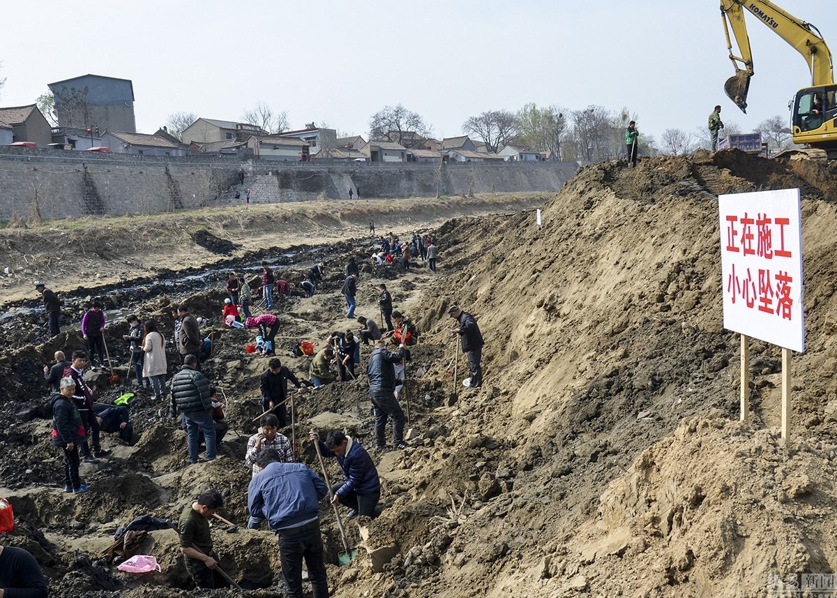 河南卫河断流清淤现古物 引村民争相挖宝