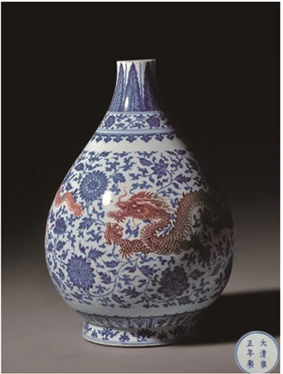 “少”、“好”、“精”是促成清·雍正青花矾红穿花龙纹玉壶春瓶高价的三个理由。业内一位专家认为,这件于清代鼎盛时期烧造的官窑瓷器,工艺复杂,品相尚佳,加之存量少,尽管是一件伤残器,卖出高价也属正常。以一件完整器的十分之一价格,买到一件少见的标准器,对于研究这一时期的同类瓷器,其在研究方面的价值很大。