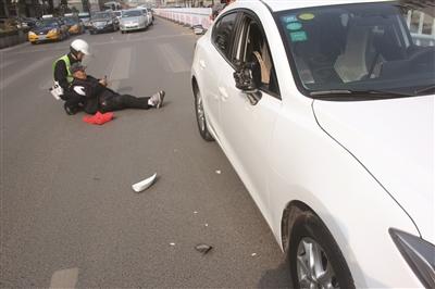 老人被撞倒不能动 协警蹲下当“靠垫”半小时