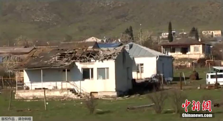 纳卡地区位于阿塞拜疆西南部,居民多为亚美尼亚人。两国因为领土问题小规模冲突不断。图为冲突发生后的房屋废墟。