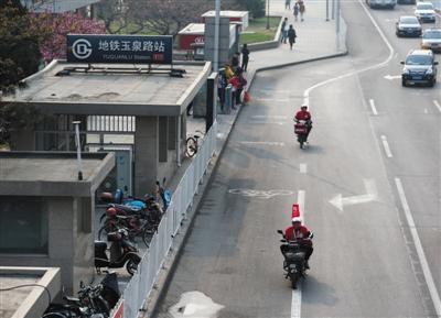 如果电动车禁行,王明还不知道该怎样绕行,“很多地方的大门只朝向石景山路,要不然用户只能到网点自取”。